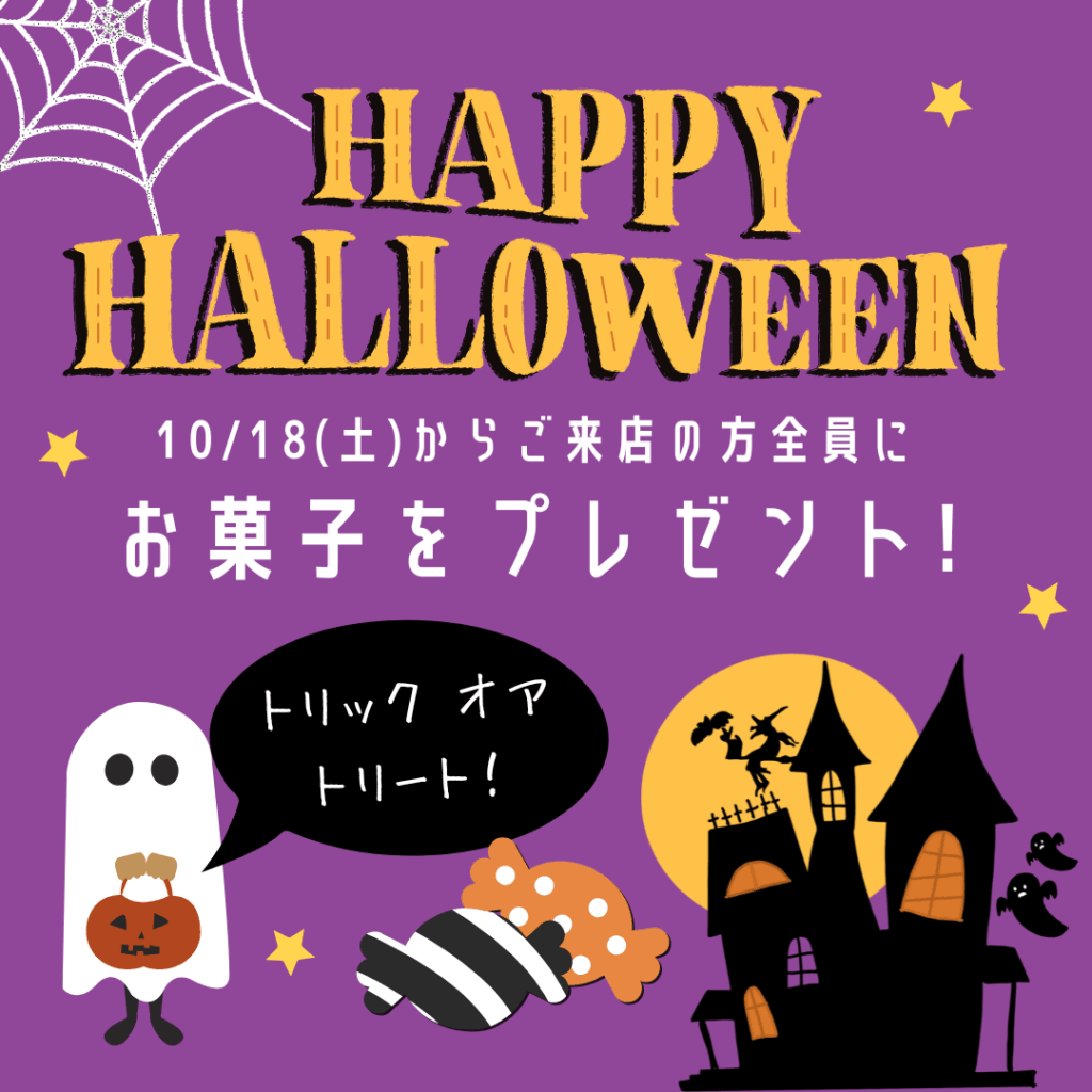 10/18(土)からお菓子🍭を配りまーす♪是非気軽に遊びに来て下さいね♪猫さん達の気分次第では、ハロウィンの仮装をしてるかも?!です🤭