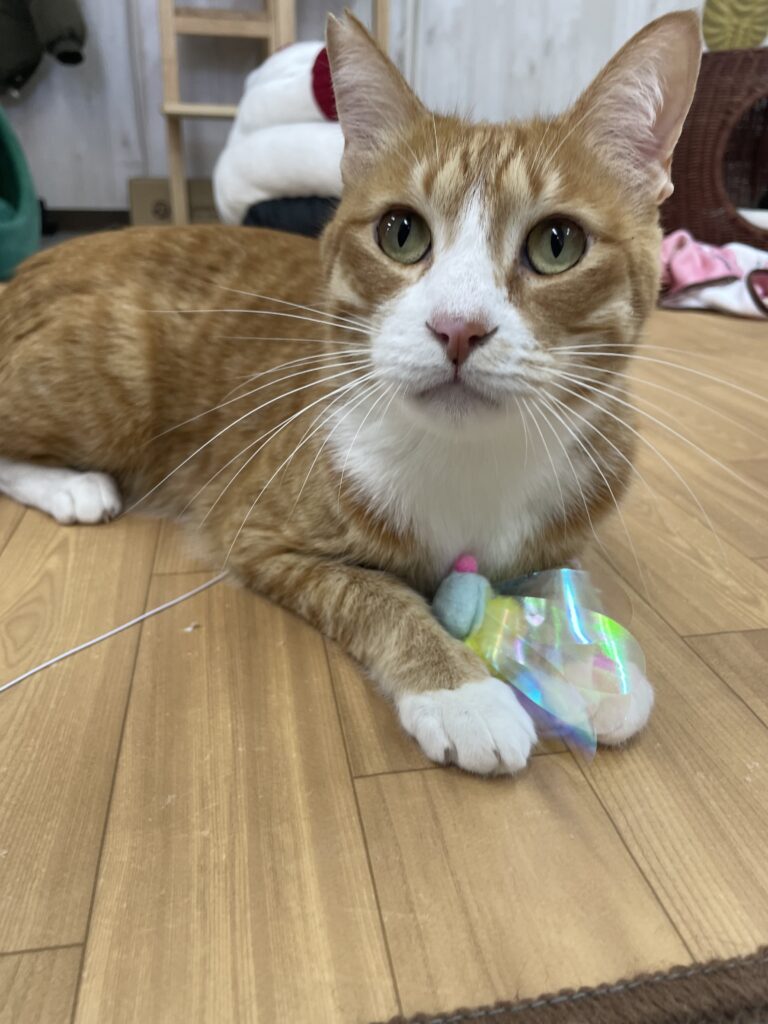 甘いマスクのはっちゃん💕隙あらばお膝の上に乗ってゴロゴロ言ってます☺️めちゃくちゃ甘えたさんのひっつき虫さんです😆遊ぶのも食べるのも大好きなので、3兄弟の中では1番大きいです。初めての人には少し怖がりさんですが、慣れるとスリごろさんです🥰